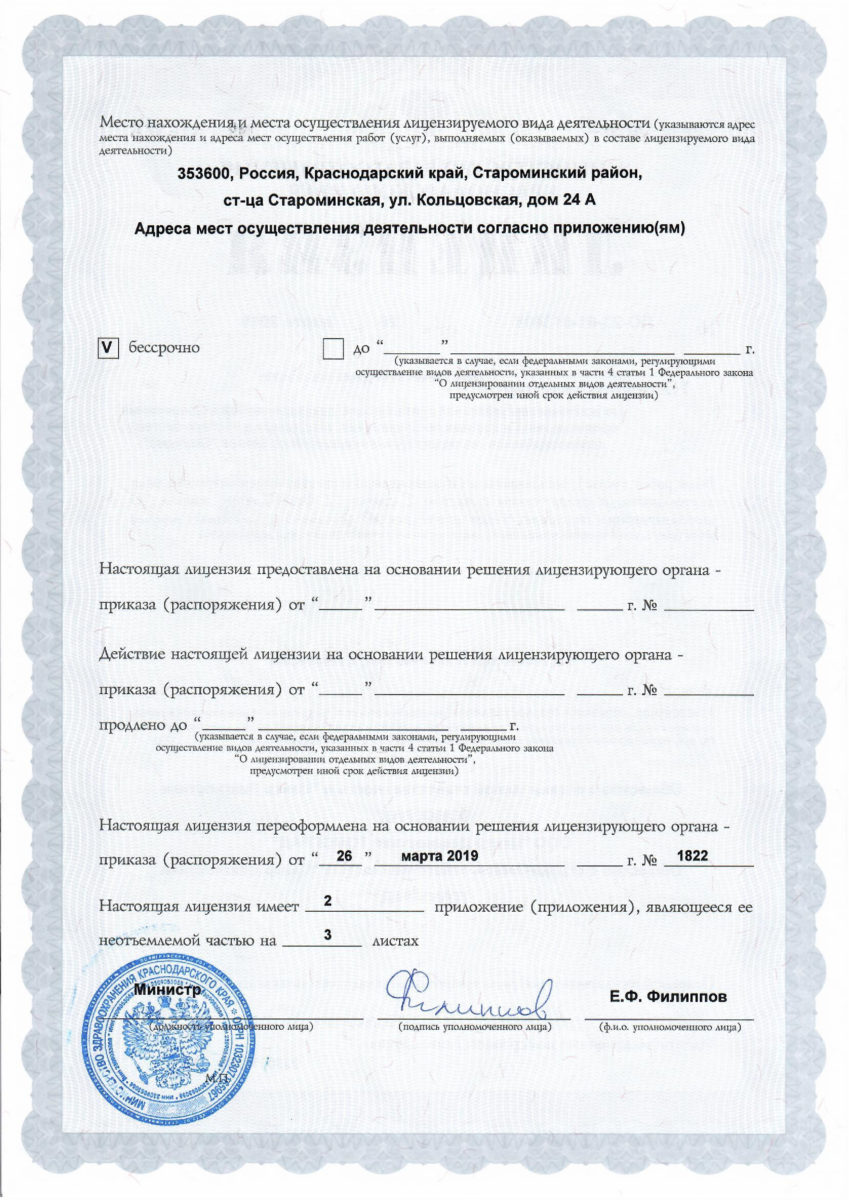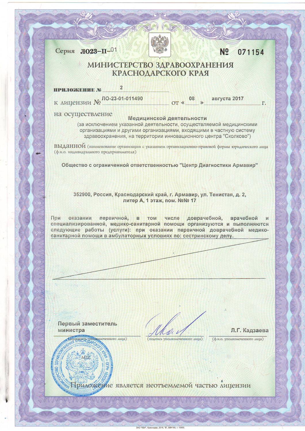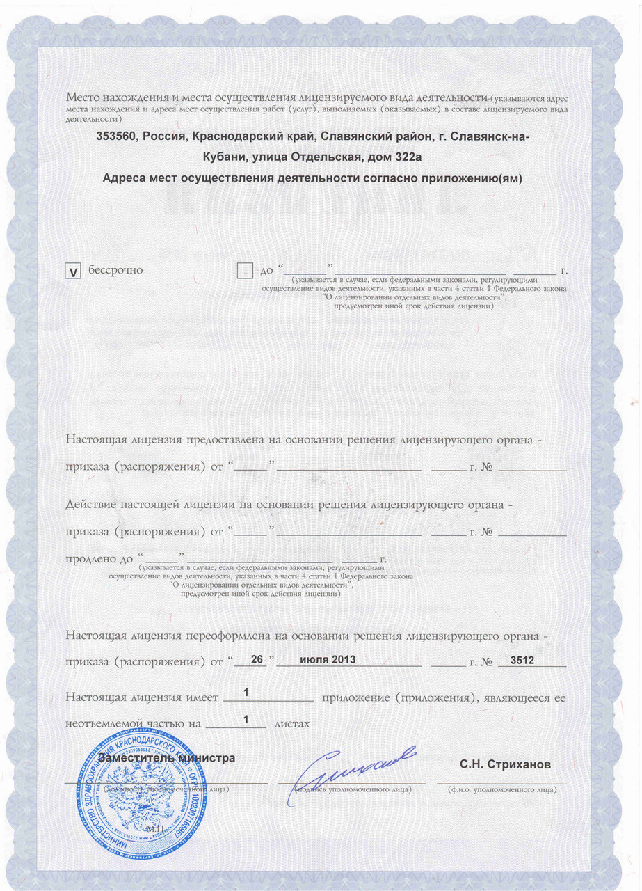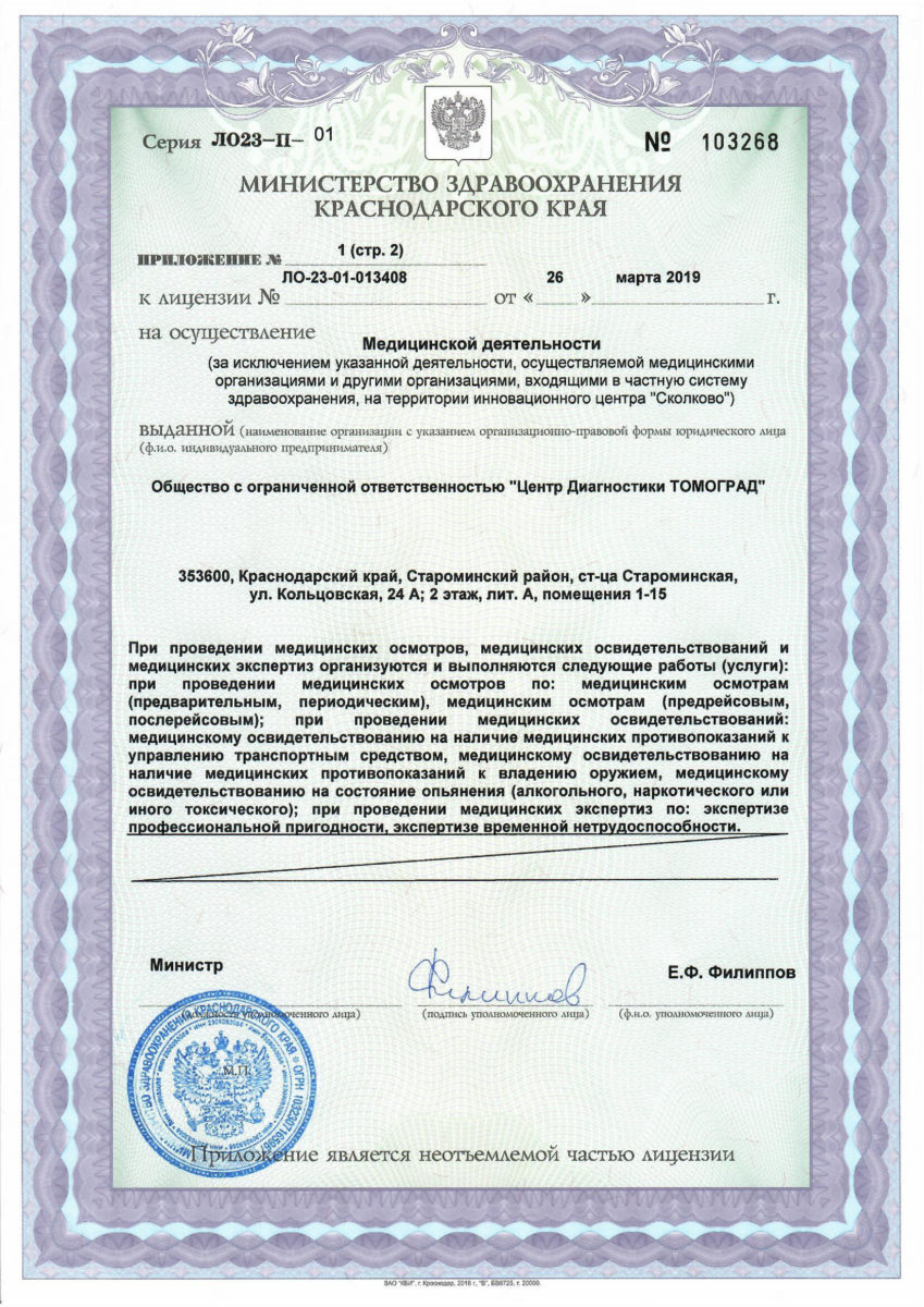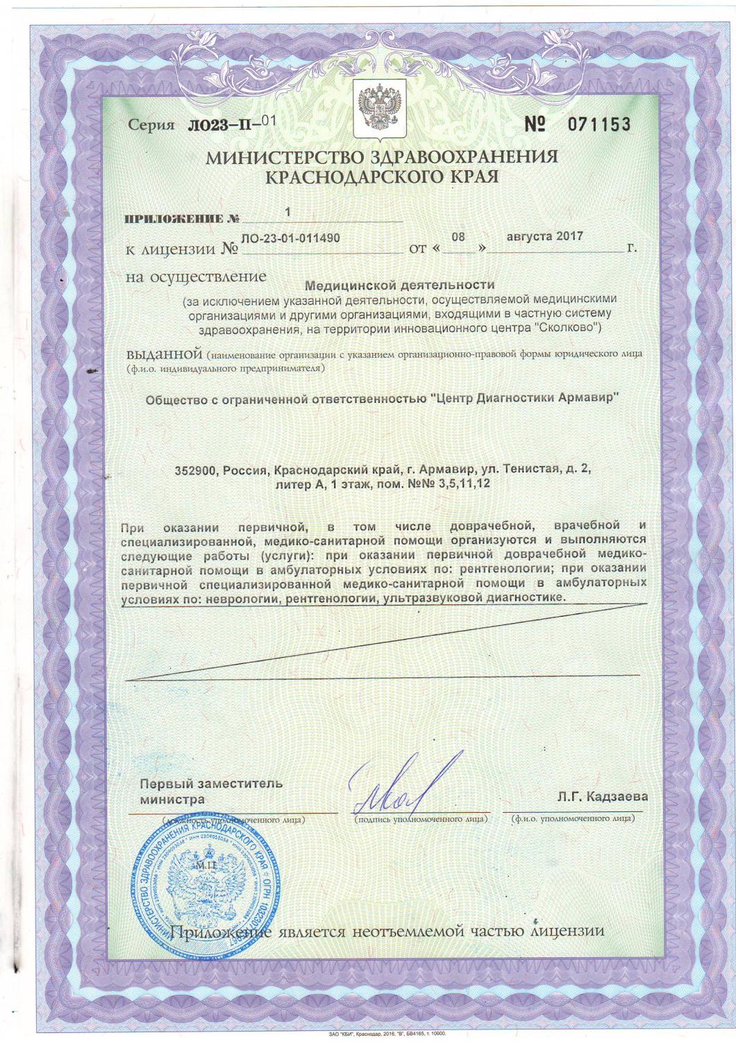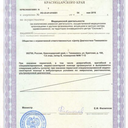 Приложение к лицензии