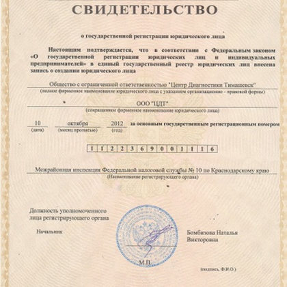 Свидетельство о государственной регистрации