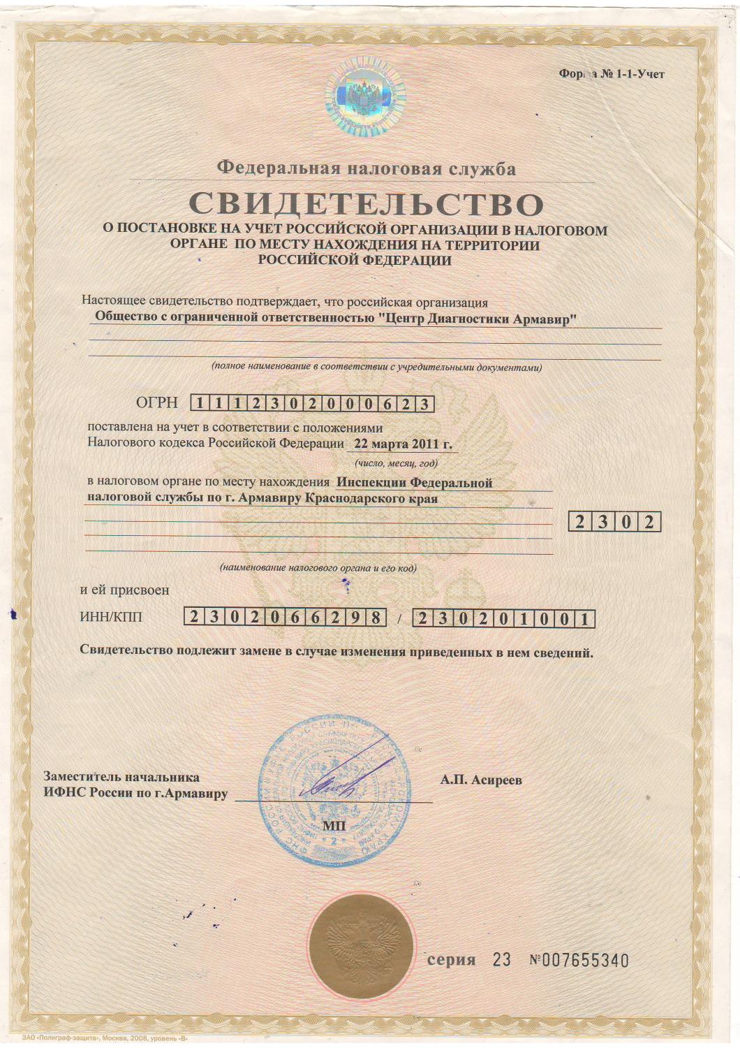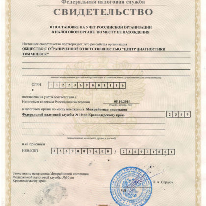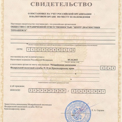 Свидетельство о постановке на учет